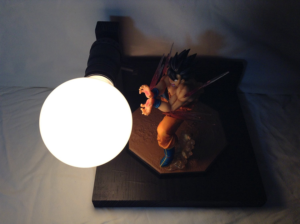 Una diseñador en Los Angeles tiene su tienda virtual llamada LitUpInteriorDesign de lámparas y decoraciones. Ha diseñado cientos de productos, pero los que más se han vendido en los últimos meses son los que usan a muñecos de Dragon Ball Z. Estas lámparas decorativas tienen a los protagonistas de la serie en poses de acción y el foco tiene la forma del poder que emana de sus manos. Ojo que solo se fabrican unas cuantas unidades al mes, así que tiene que estar muy atentos si están interesados en comprar una. También pueden intentar fabricar el suyo comprando el muñeco y adaptando algunas tablas de madera.