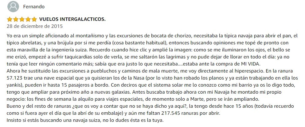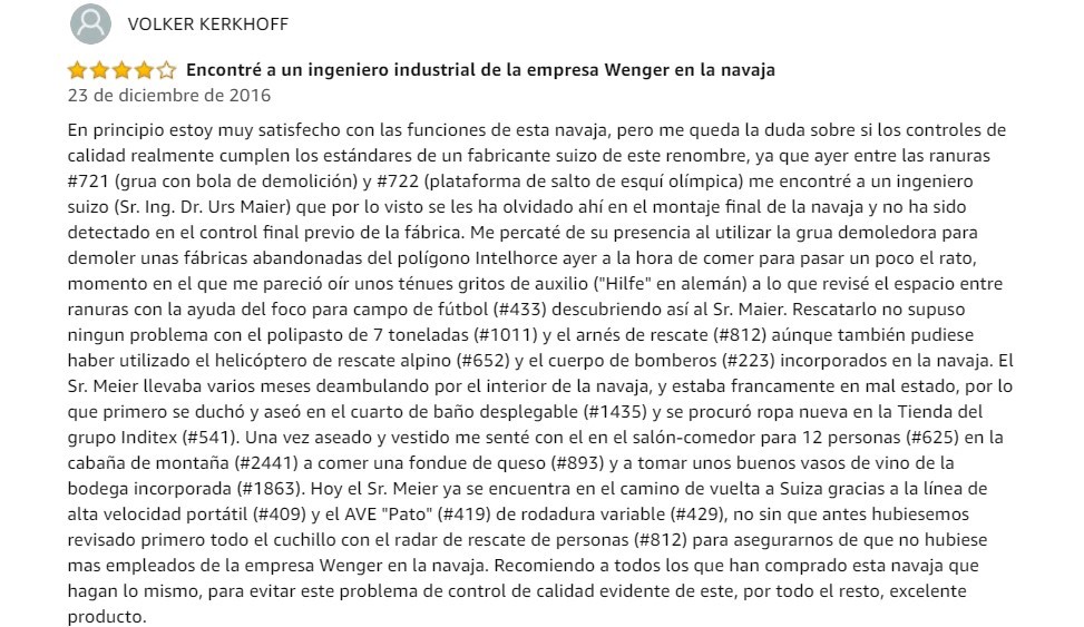 Sin embargo, un solo producto hizo que Amazon sea ‘el chiste del mes’, pues las reseñas se han vuelto en todo un meme gracias a su humorismo. Sucede que la compañía catalogó una navaja suiza a 11.000€, una cifra descomunal para un producto como este.