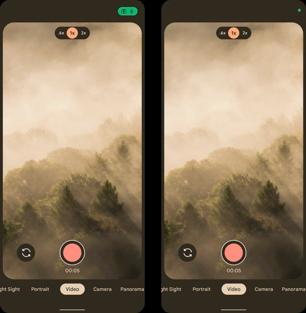 La interfaz de la cámara también luce un lavado de cara con un aspecto similar a lo visto en iOS. Al parecer tendremos un indicador verde en la parte superior para la cámara y el micrófono, el cual podremos activar o desactivar manualmente desde cualquier aplicación.