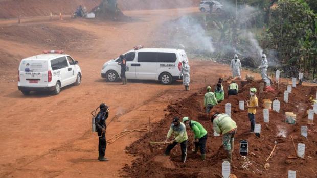 Antimascarillas son obligados a cavar tumbas para víctimas del coronavirus en Indonesia