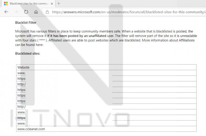 Ningún usuario podrá mencionar a CCleaner y de hacerlo su mensaje aparecerá censurado. Cabe recalcar que los foros de Microsoft son el mayor punto de llegada de usuarios con problemas de sistemas Windows y que tu sitio sea prohibido de mencionar es una medida drástica.