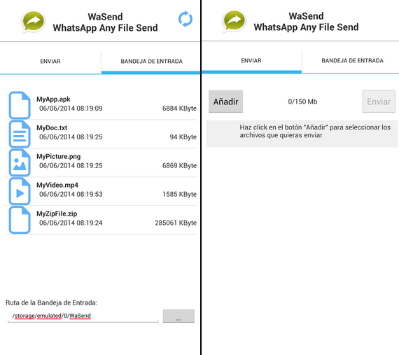 Para que funcione, el emisor y el receptor deberán tener instalada la aplicación. Para enviar archivos grandes por WaSend abre la App y selecciona los archivos a transferir. Luego de pulsar el botón Enviar, WaSend engañará a WhatsApp haciéndole creer que estás enviando vídeos.El receptor debe abrir la App de WaSend para descomprimir en los archivos originales.