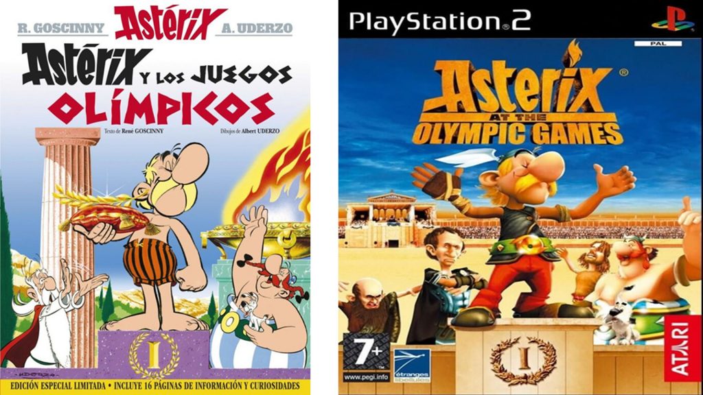 Astérix: El popular personaje del cómic francés también tiene varias versiones en videojuego. Desde “Asterix “, videojuego desarrollado por Steve Woita y distribuido por Atari para el Atari 2600 en Europa en 1993 hasta  Astérix en los Juegos Olímpicos que es un videojuego de deportes ambientado en los Juegos Olímpicos y basado parcialmente en el cómic homónimo y en la película de mismo nombre. El juego ha sido desarrollado por Etranges Libelulles y publicado por Atari para las consolas Nintendo DS, Wii, PlayStation 2 y Xbox 360, además de para PC, llegando al mercado a principios de 2008. Los jugadores pueden practicar varios deportes olímpicos tales como lanzamiento de jabalina, lanzamiento de martillo, salto de longitud, carreras en diversos estilos y diversos deportes más.