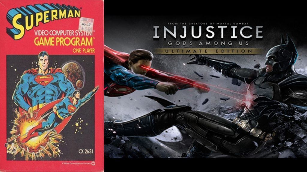 Superman: El primer videojuego de Superman fue lanzado en 1983 para la Atari 2600. Este videojuego marcó el comienzo de los videojuegos de Superman y logró ser un éxito. Si bien es cierto los videojuegos de Superman no se han mantenido dentro de los más exitosos uno de sus arcos derivados es Injustice. Una historia de un Superman sin esperanza que cree que la mejor manera de cuidar a los suyos es tomando el control del mundo por encima de la libertad individual.
