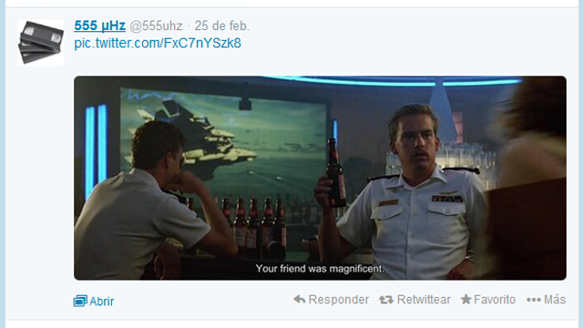 Desde el 23 de enero la cuenta de Twitter @555uhz empezó con el reto de transmitir cuadro por cuadro la película Top Gun a través de imágenes en JPG que incluyen subtítulos.