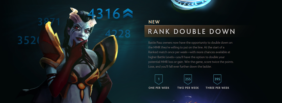Vuelven los clásicos quest personales para conseguir objetos cosméticos específicos para algunos personajes y en esta edición se podrá hacer una jugada bastante arriesgada: Poder apostar tus puntos MMR para ganar más en una partida, pero también perderás más de lo normal si fallas.