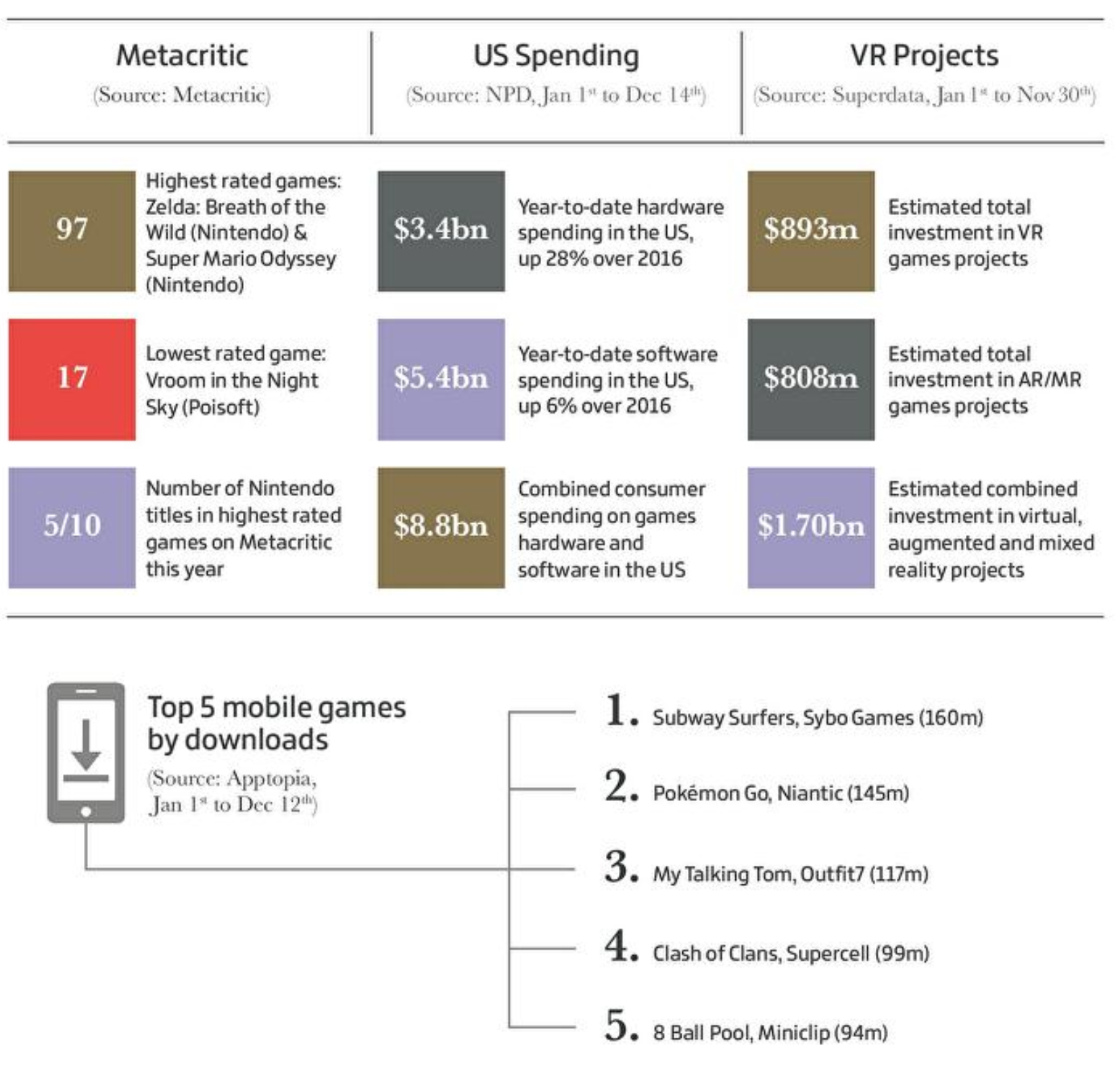 Al igual que en 2016, el equipo de GamesIndustry ha creado una gran recopilación de data y cifras referentes a la industria de los video juegos para este año.