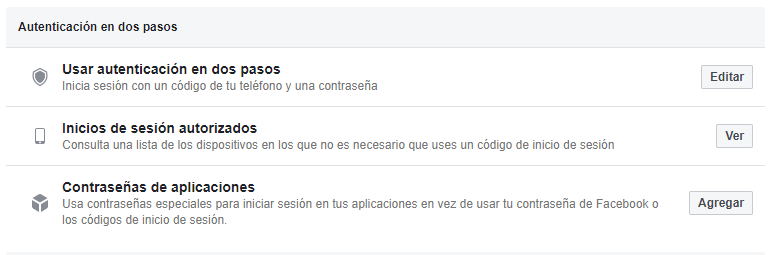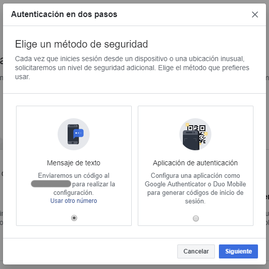 Hasta ahora, Facebook ha requerido esto para activar la autentificación de dos factores. Con los cambios, aceptará también aplicaciones como Duo Security y Google Authenticator.