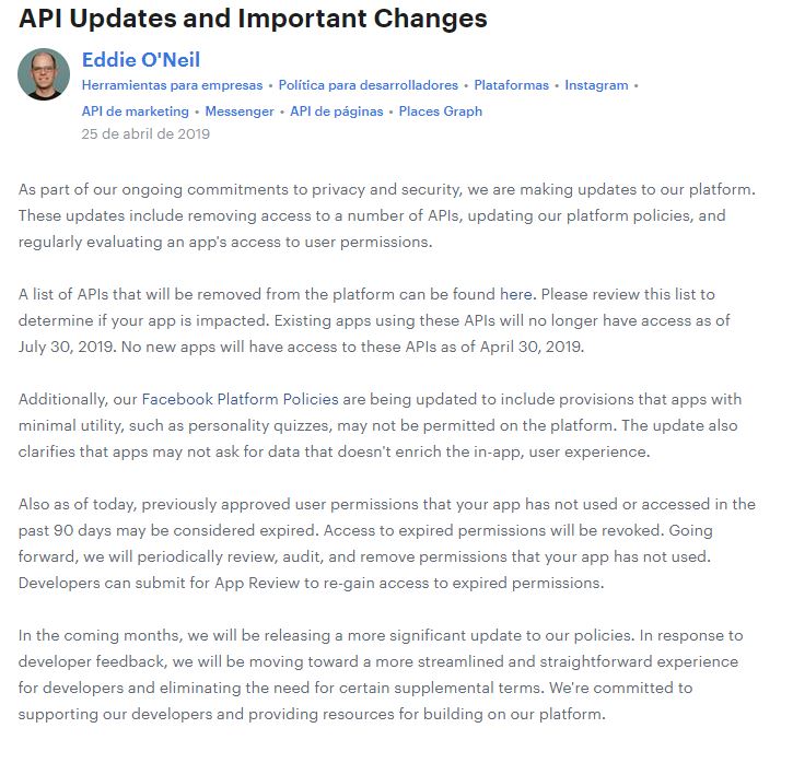Esto fue declarado por Eddie O’Neil, jefe de gestión de productos, en el Blog para desarrolladores de Facebook. La medida significa la prohibición de implementar cuestionarios de personalidad a cualquier aplicación de terceros que use la red social.