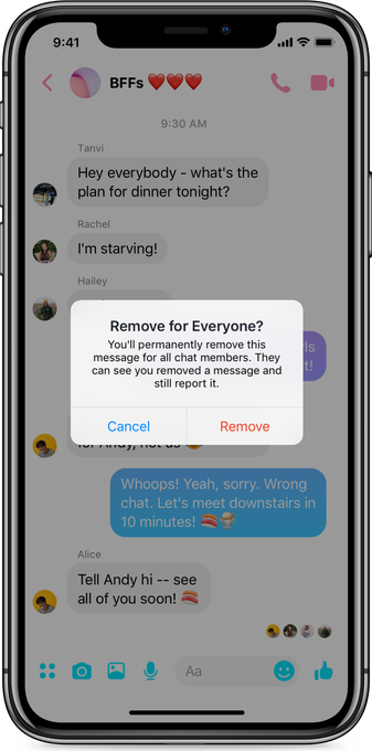 Facebook ha hecho realidad una promesa realizada hace algunos meses: Ahora podremos borrar mensajes en Messenger, pero solo los que han sido enviados en los últimos 10 minutos.