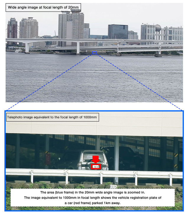 Además, Fujifilm confirma que esta cámara ofrece una distancia focal entre 20 a 800mm; con lo cual podremos divisar personas a tres kilómetros de distancias. Esta distancia es superior porque con ciertas características (físicamente notables) ya podemos reconocer a una persona; pero es distinto con los carteles (placas de auto), ya que la imagen debe ser bastante nítida.