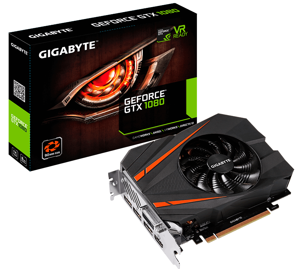 Gigabyte presentó su nueva tarjeta gráfica GeForce GTX 1080 Mini ITX 8G, la más compacta del mundo en su categoría. Con tan solo 16,9cm de largo, está diseñada para caber en cases mini ITX. Cuenta con 8GB GDDR5X 256bit de memoria RAM y corre a 1632 MHz en su modo base (1771 MHz con overclock).