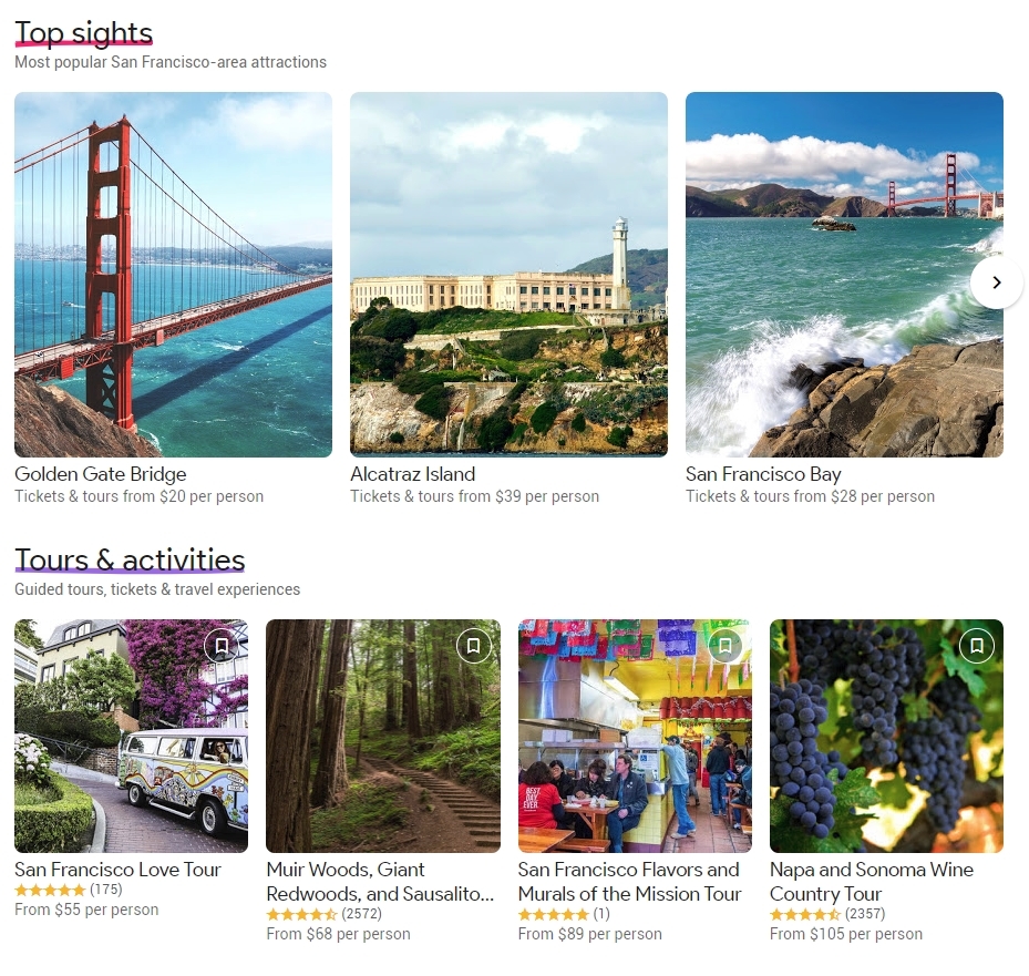 Al darle click a ciudades como París o Nueva York, encontraremos las top tres atracciones de las que todo turista ha oído hablar.