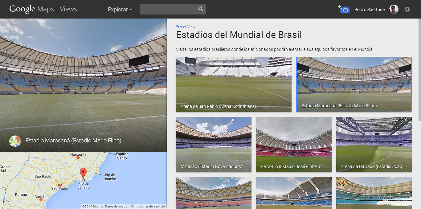 Estamos a una semana del Mundial de fútbol que va a celebrarse en Brasil y para esto la nueva actualización de Google Maps nos trae la experiencia de estar en uno de los 12 imponentes estadios donde se disputaran los duelos entre los 32 países en busca del trofeo dorado.