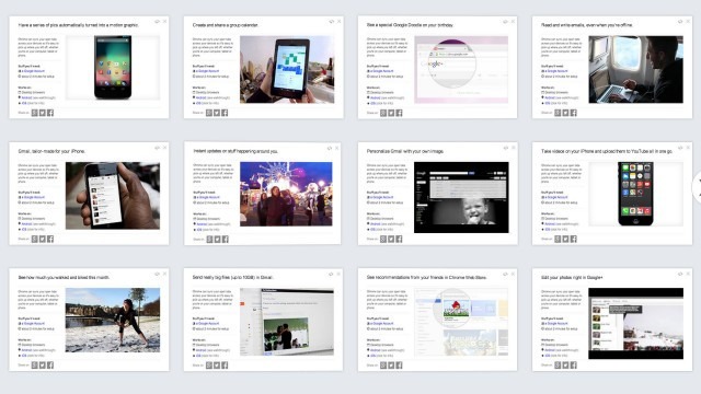 Es por eso que ha lanzado una web llamada «Google Tips» (actualmente en inglés) donde te muestra consejos y trucos sobre sus diversos productos. Los tips son mostrados en formato de tarjetas. Sólo basta hacer clic sobre una de las tarjetas y seguir los pasos que esta indica.