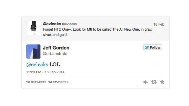 Lo curioso es que en el video se menciona al smartphone como «el nuevo HTC One» en lugar de «HTC One 2» o «HTC One+» cómo aparecía en los rumores. En las redes sociales, el responsable de relaciones públicas de HTC contestó con un sarcástico «LOL» cuando se mencionó que el teléfono se llamará «el nuevo HTC One» y que se venderá en gris, plateado y dorado.