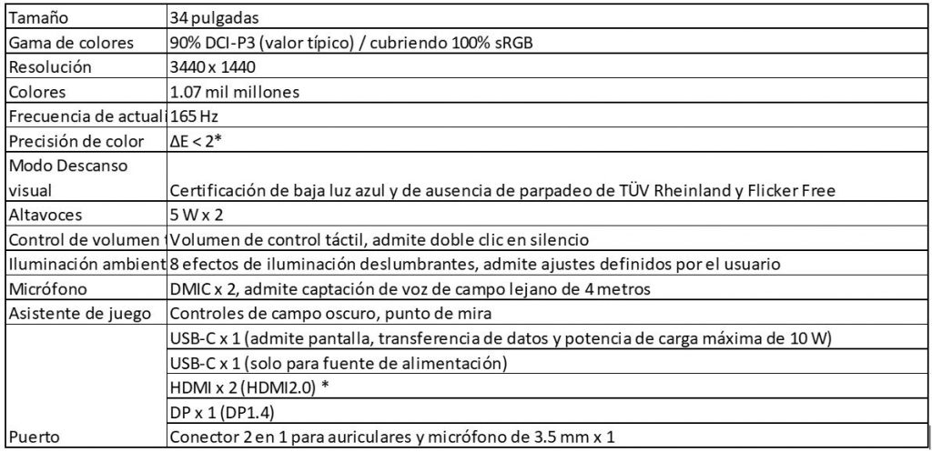 Todo esto se complementa con una tasa de refresco de hasta 165 Hz lo que lo convierte en una muy buena alternativa para videojuegos competitivos como League of Legends, Dota 2, Valorant y muchos más. Integra también una barra de sonido de dos bocinas de rango completo contando con un control tactil y luces de colores RGB. Con respecto a la conectividad, el MateView GT dispone de un puerto USB-C para vídeo, dos puertos HDMI 2.0, un puerto DisplayPort 1.4 y una entrada para audífonos 3.5mm.