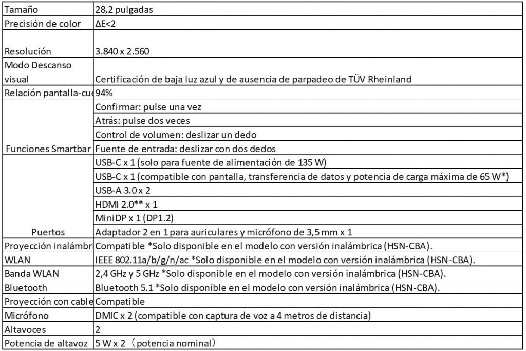 Especificaciones HUAWEI MateView