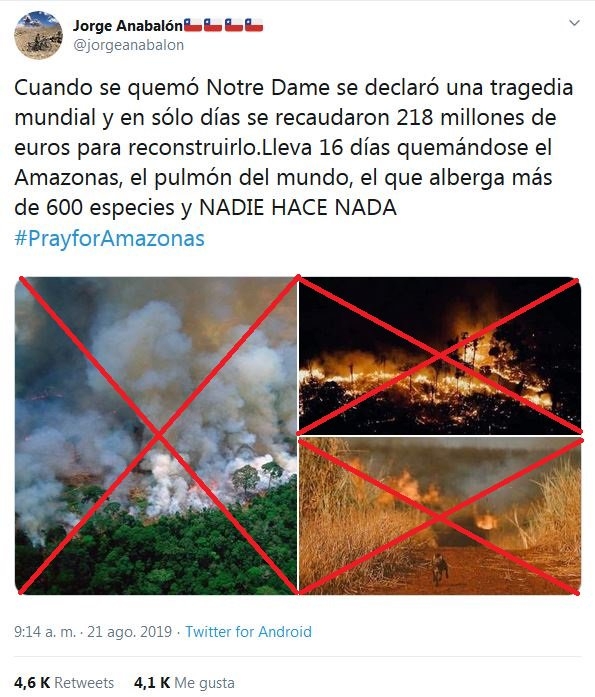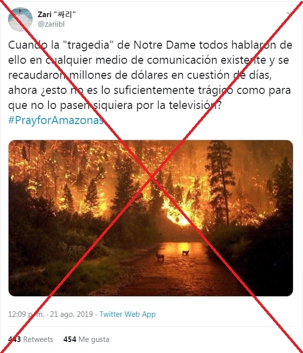 Este conjunto de imágenes ha sido uno de los más viralizados de los últimos días, y aunque se trate de capturas realmente fuertes y que evidencian la gravedad de un incendio forestal; ninguna corresponde a lo acontecido en la Amazonia.