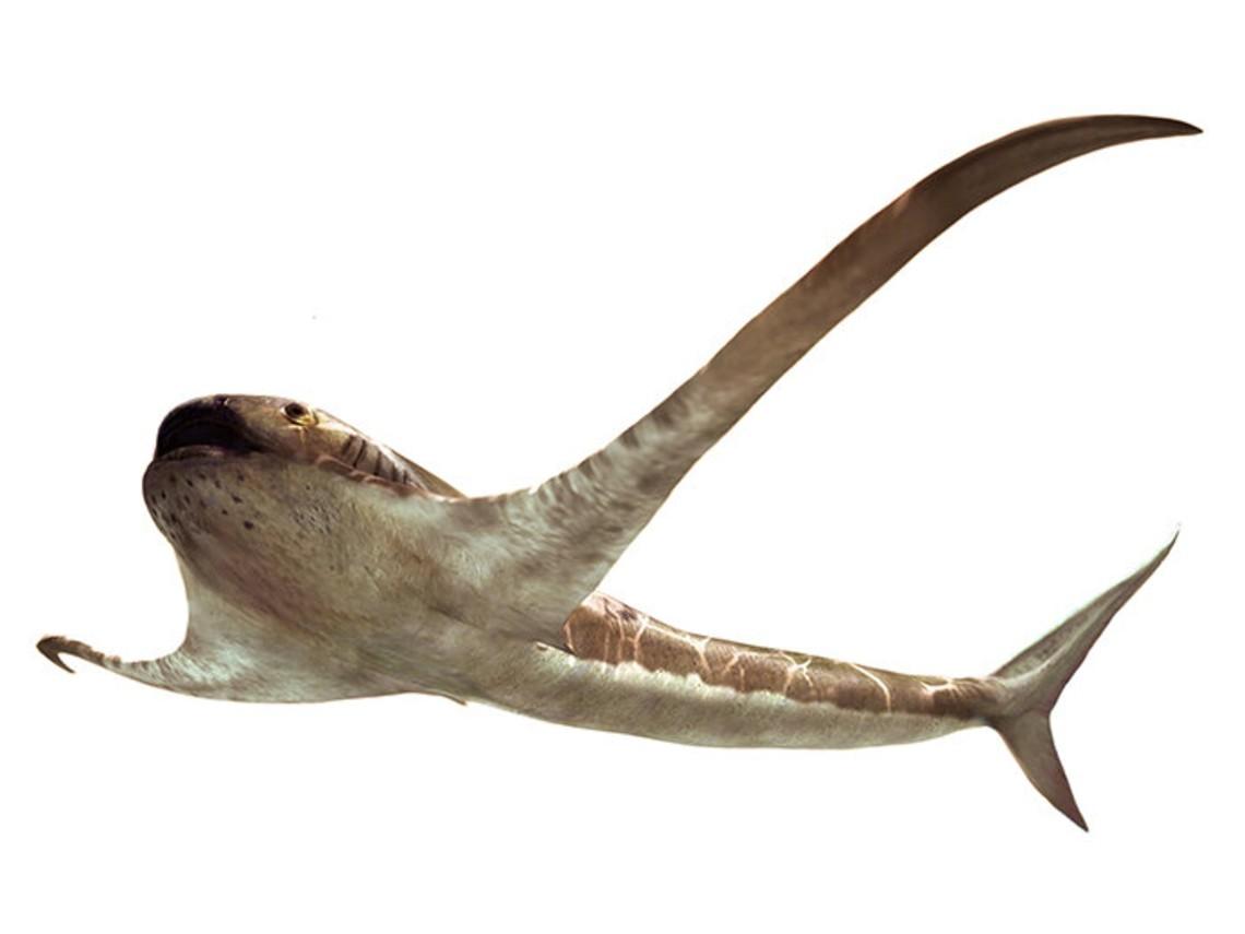 Se trata del ‘tiburón alado‘, conocido científicamente como ‘Aquilolamna milarcae‘ o tiburón águila. Esta vez, el fósil encontrado data de hace 93 millones de años, cuando este tipo de animales tenía aletas tan alargadas que asemejaban a las alas de las aves.