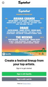 En esta ocasión, el trabajo lo hace Instafest, una aplicación de terceros la cual vinculas a tu cuenta de Spotify para que identifique los artistas que has estado escuchando y, según ello, te hace el cartel.