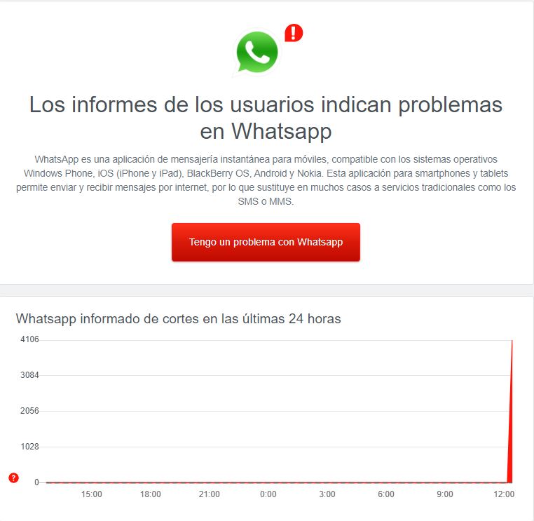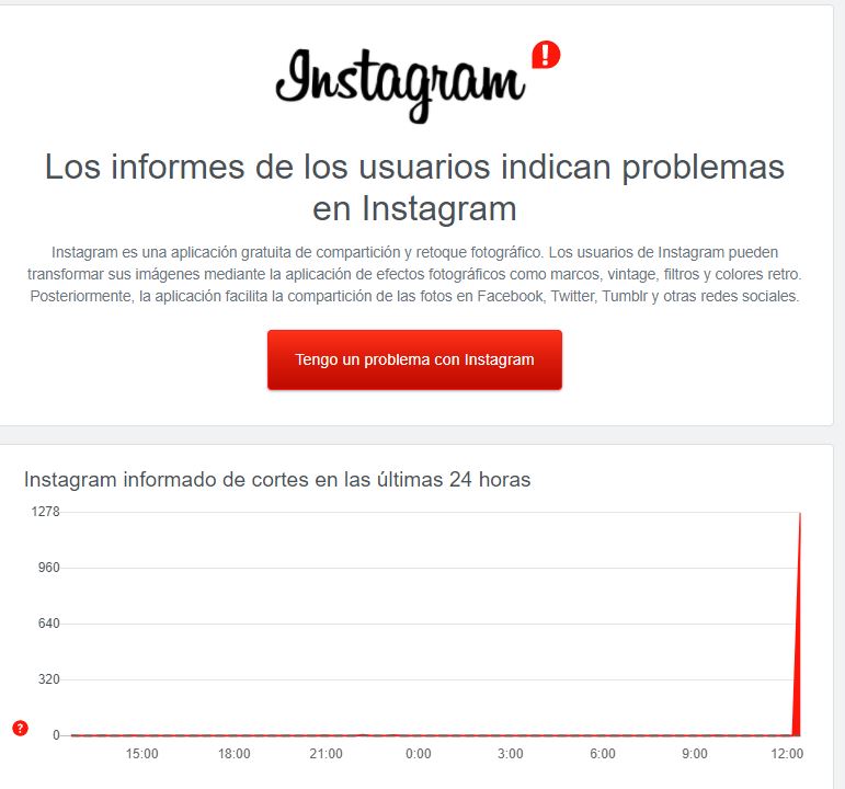 Nota original: Dos de las aplicaciones más usadas del mundo han sufrido una caída en sus servicios dejando de funcionar al completo. Instagram y WhatsApp no funcionan, imposibilitando la comunicación vía estas apps en todo el mundo. Esta información es confirmada por el sitio web Down Detector, que se especializa en recibir reportes de fallos en apps o en sitios web.