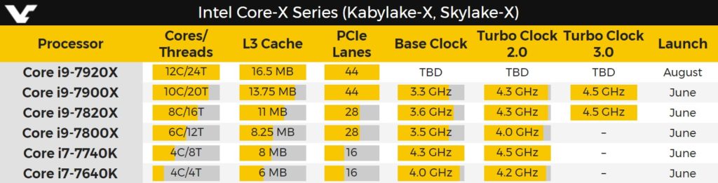 Intel está planeando algo bastante grande para los próximos meses. Su nueva linea de procesadores para el 2017 incluyen una nueva nomenclatura que pasa de Core i7 a Core i9 y se estarían lanzando a partir de junio. Según los reportes estos serían los nombres de los modelos y las especificaciones