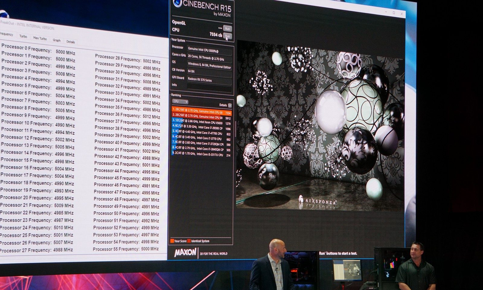 Si es que el Intel i9 con 18 núcleos te sorprendió; Gregory Bryant aseguró que el nuevo procesador te dejará mudo. Ya que es la primera vez que se ve un ‘core’ de 28 núcleos corriendo a 5GHz. El cual obtuvo un puntaje de 7334 en Cinebench; cifra que solo multi-procesadores han logrado.