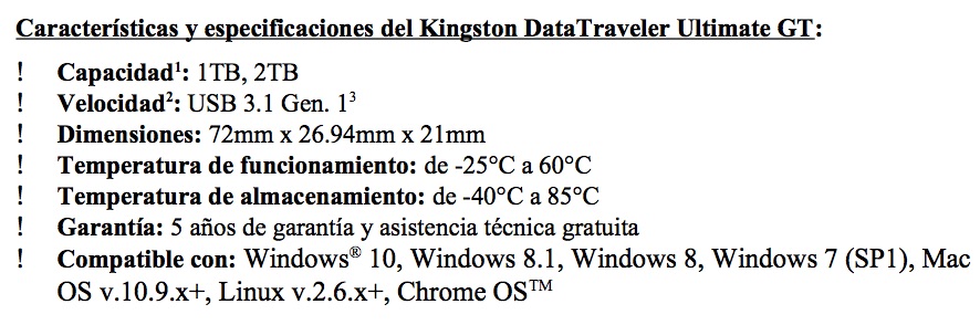 DataTraveler Ultimate GT saldrá a la venta en febrero y estará disponible en 1 TB y 2 TB con 5 años de garantía. No hay información sobre el precio, pero recordemos que el modelo de 1 TB se vende cerca de 900 dólares, por lo que este dispositivo podría tener un precio similar.