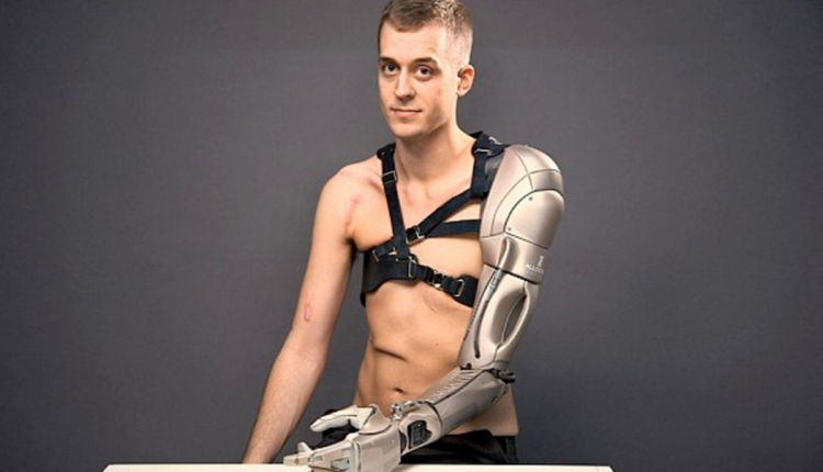 Este brazo biónico está conectado a los nervios de su cuerpo y a los músculos del hombro. La prótesis cuenta con una pequeña mano mecánica para poder sostener objetos pequeños pero lamentablemente por su peso, no puede ser usado todo el día. Este brazo cuenta incluso con un puerto USB para que puedas cargar diversos dispositivos.
