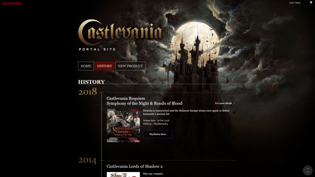 Es interesante, y un poco triste al mismo tiempo, darle un vistazo al sitio web de Castlevania.