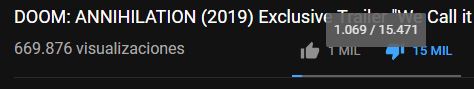 La nueva película de Doom, subtitulada Annihilation, acaba de estrenar su nuevo tráiler y las reacciones no son para nada positivas. La nueva adaptación, basada en el legendario videojuegos de Id Software, cuenta con aproximadamente mil likes y más de 15 mil dislikes.