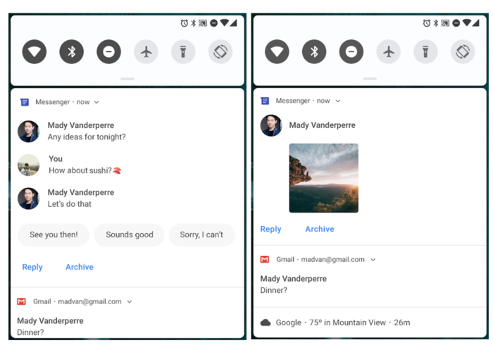 Eso sí, una de las características que más cautivó a los usuarios, sin duda fue el nuevo sistema de notificaciones. En este campo, Google ha puesto todo su esfuerzo para mejorar su nivel visual y funcional. Por ello, en Android P será mucho más fácil compartir mensajes desde la barra de notificaciones. Ya que en ella se mostrarán vistas previas del contenido multimedia recibido (Fotos, vídeos, stickers). Incluso existirá posibilidad de respuesta inmediata, disponible también para responder correos, no solo mensajería instantánea.