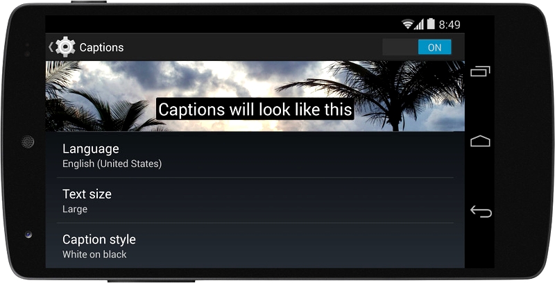 KitKat ha implementado la opción de agregar subtítulos con opciones de idioma, tamaño y estilo. Todas las aplicaciones que muestran subtítulos en sus vídeos tendrían que respetar esa configuración.