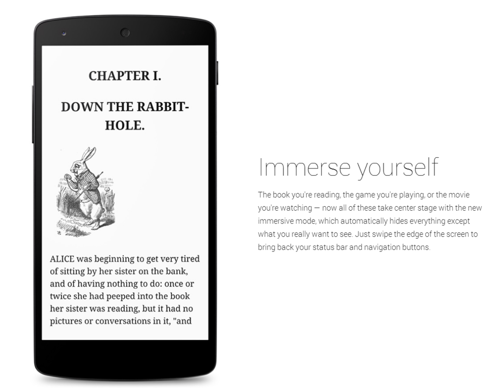 Google prometió una mejor experiencia para las eBooks. Immersive mode oculta automáticamente todo excepto lo que realmente quieres ver.