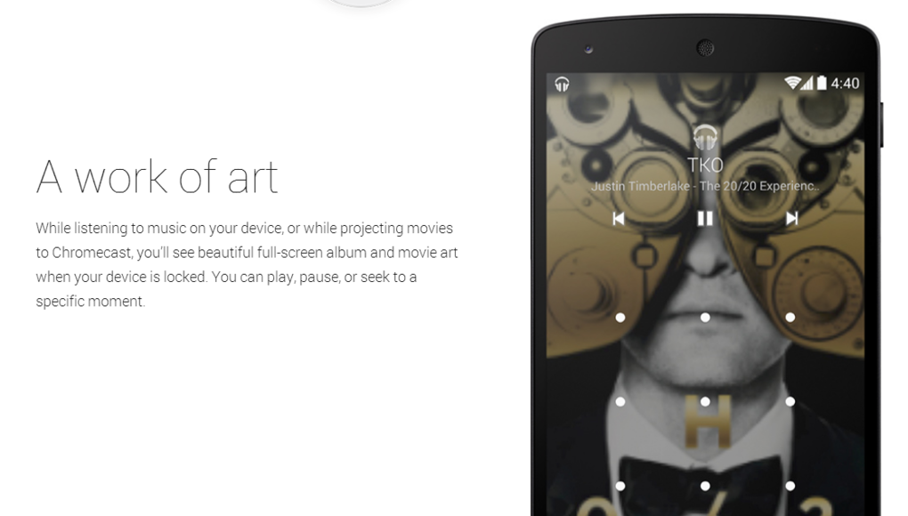 Google mejoró y perfeccionó su interfaz de usuario con un mayor énfasis en las aplicaciones que en los elementos de la propia interfaz. Ahora puedes poner play, pausa, adelantar o retroceder una canción con el celular bloqueado.