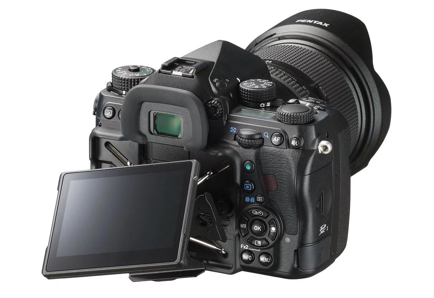 La K-1 Mark II cuenta con un estabilizador de 5 ejes, una pantalla de 3.2″, un sistema con IA que escanea el ambiente, 33 puntos de autofoco, dos ranuras para memorias SD, y lamentablemente, resolución FullHD a 30fps. Aunque también se puede grabar en resolución 4K, pero en un modo distinto de filmación.