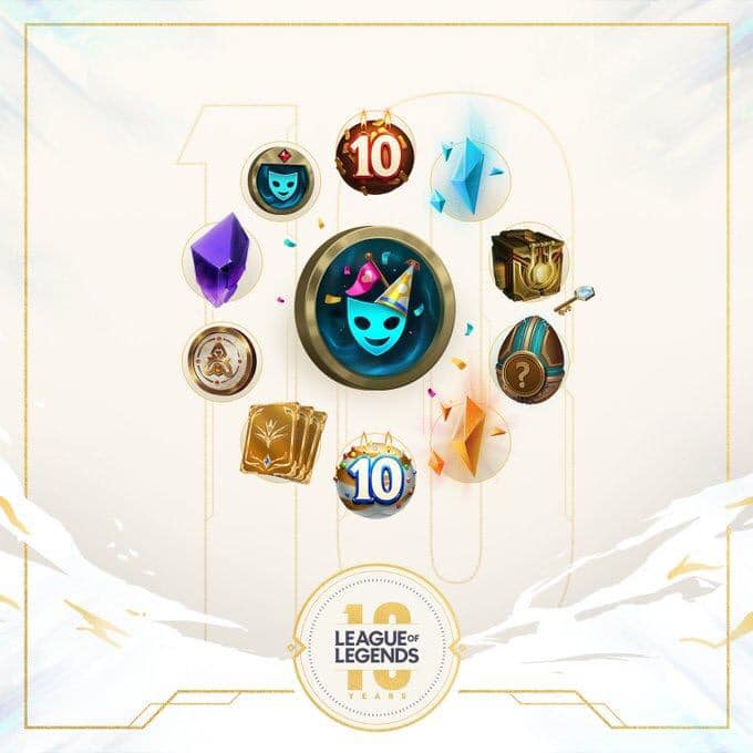 - Regalos por los 10 años: A partir del 17 de Octubre, recibirás regalos durante los siguientes 10 días cuando loguees en League of Legends. Los regalos son los siguientes: