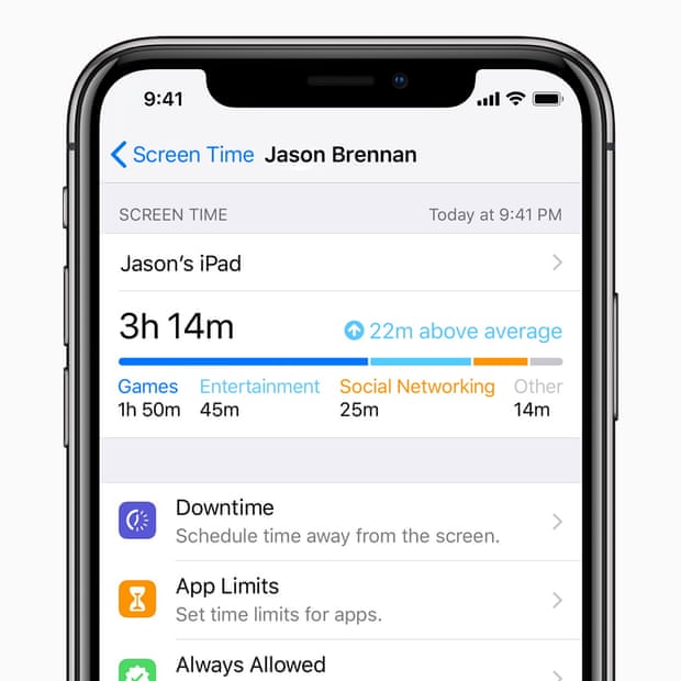 El Reporte de Actividad puede ser visto en sus propios iPhones, además de poder colocar Límites de Apps para los menores.