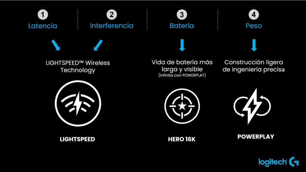 Mediante ingeniería y diseño integrales, Logitech G desarrolló una robusta solución inalámbrica para afrontar problemas básicos de latencia, estabilidad y conectividad. El resultado final es LIGHTSPEED, una solución inalámbrica de calidad profesional que ofrece mayor rapidez que la de muchos mouse para juegos con cable (1 ms). Esta tecnología fue presentada en Perú siendo mostrada en una nueva gama de produtos inalambricos de alta presición.