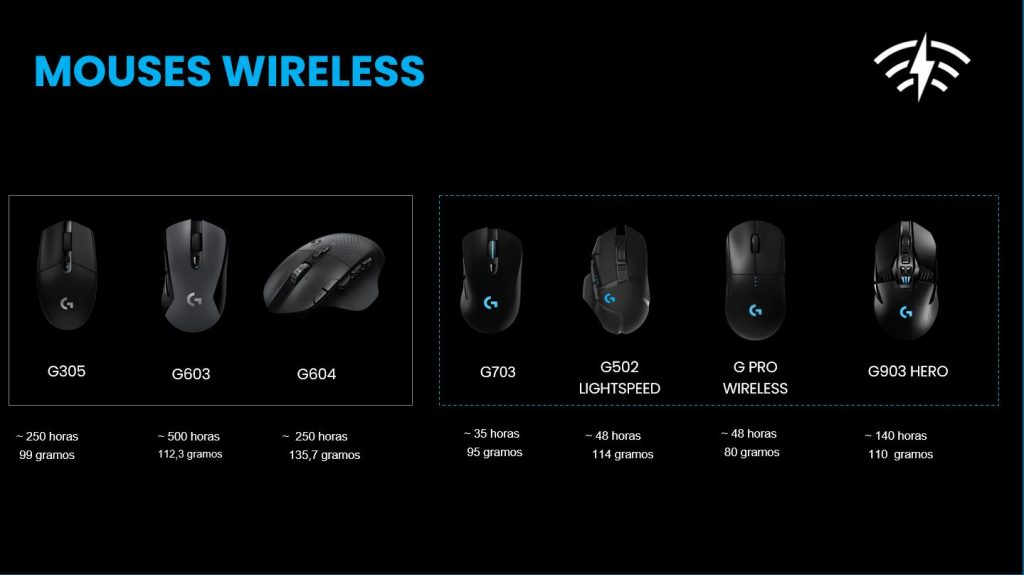 Dentro de los productos presentados tenemos una amplia gama de mouses Logitech: Los G305, G603, G604, G703, G502 Ligthspeed, G Pro Wireless y el G903 Hero.