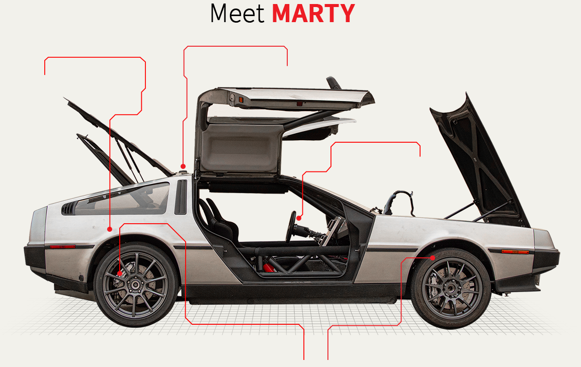 Titulado como ‘Marty‘, este vehículo deportivo fue conocido por primera vez en la película ‘Back to the Future’. Allí, su tecnología era realmente futurista, pues este coche era capaz de viajar en el futuro.