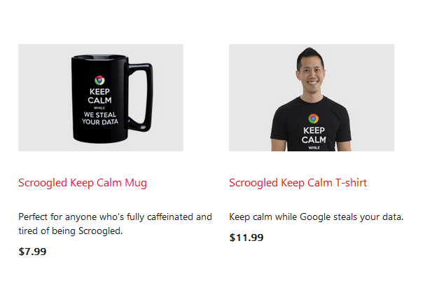 Esta campaña tiene una web donde puedes encontrar información en contra de Google y hasta tiene una tienda de productos con polos, gorros y tazas de la campaña.