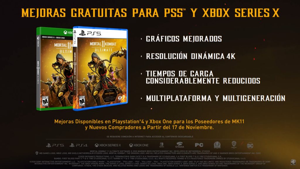 Estas nuevas ediciones llegarán con mejoras como resolución dinámica 4K, gráficos mejorados, tiempos de carga reducidos y tendrá crossplay entre diferentes plataformas y generaciones, unificando al completo la base de jugadores de Mortal Kombat 11 de PlayStation, Xbox y PC.