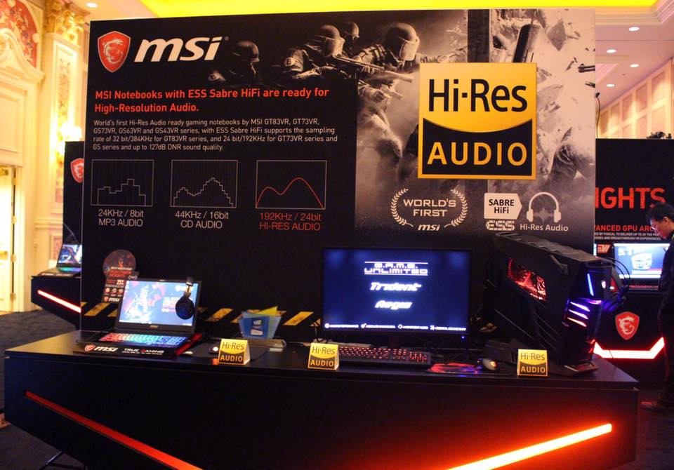 MSI también mejoró la experiencia de audio con el DAC de audio ESS SABRE HiFi para Audio de Alta Resolución. De esa manera la serie MSI GT83VR tiene una de tasa de muestreo de 32bit/384KHz y las series GT73VR, GS73VR, GS63VR y GS43VR tienen una tasa de muestreo 24bit/192KHz.