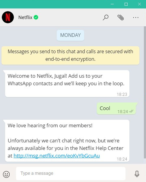 Con estos datos, la unión de Netflix y WhatsApp era cuestión de tiempo, ambas siempre se caracterizaron por buscar ampliar su llegada al público. Aunque los detalles u objetivos de la unión no han sido revelados, ya comenzaron a aparecer algunas muestras de esto en la web de Netflix de la India.