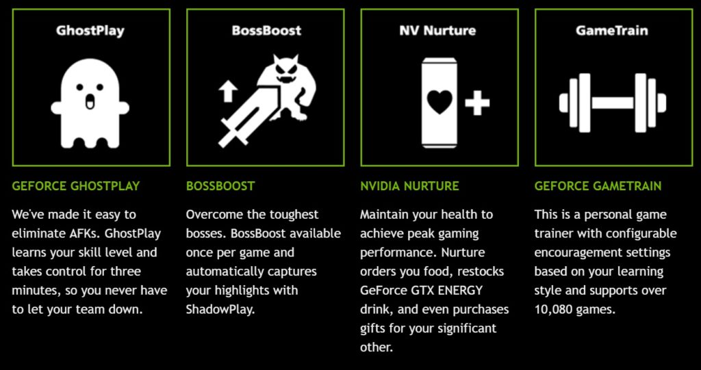 Nvidia presenta la GeForce GTX G-Assist, un USB especial que incluye un sistema de inteligencia artificial que toma el control de tu juego. Este avanzado sistema fue diseñado para que puedas estar AFK (Away From Keyboard) pero seguir apoyando a tu equipo. Solo necesitas programar el sistema GhostPlay para que determinar el comportamiento de la IA automáticamente comentará por ti y emulará tu cantidad promedio de acciones por minuto.