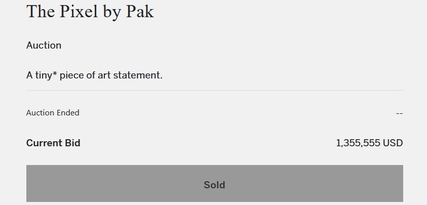 Pagan 1,36 millones de dólares por un píxel gris en una subasta