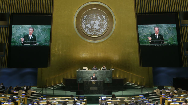 Secretary-General Ban ki-moon ( at the podium )speaks during the 21th session of the Human Rights Council. 10 September 2012. Photo by Jean-Marc Ferré