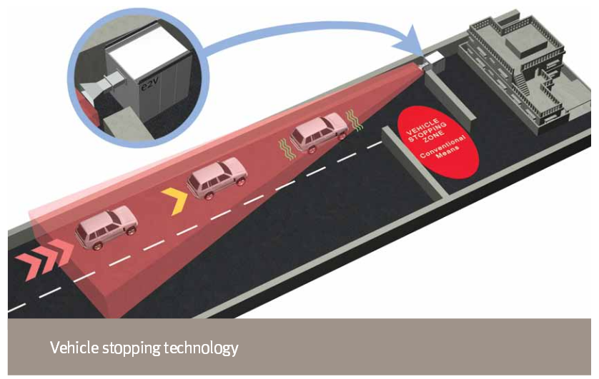 La tecnología llamada RF Safe-Stop de la empresa E2V envía señales de radiofrecuencia en un rango de 50 metros donde los sistemas electrónicos se confunden y dan la posibilidad de que el vehículo se detenga por completo.